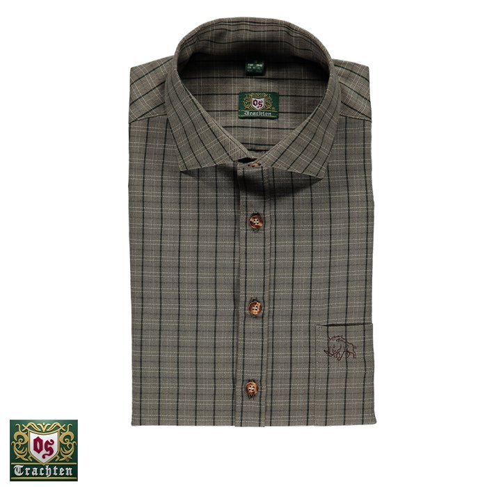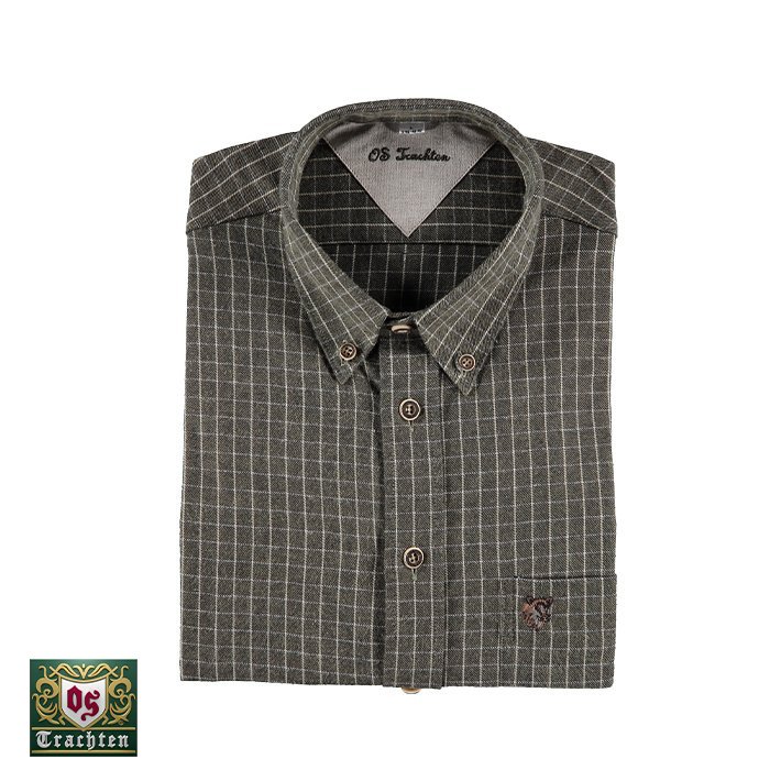 OS-Trachten Haki Kareli Uzun Kollu Gömlek 47/48