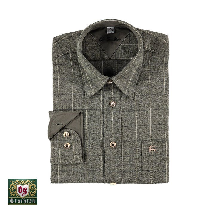 OS-Trachten Haki Kareli Uzun Kollu Gömlek 41/42
