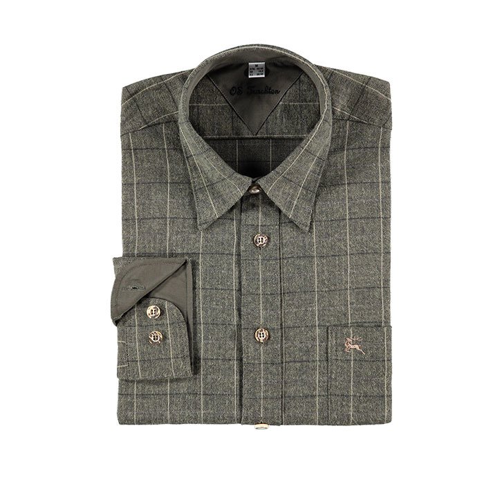 OS-Trachten Haki Kareli Uzun Kollu Gömlek 47/48