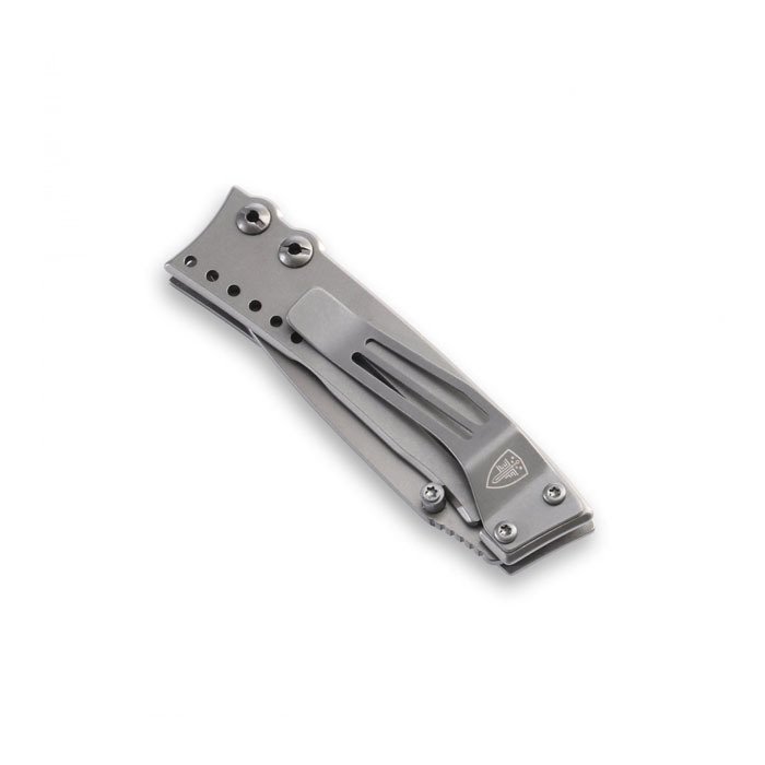 Tam potansiyelini görmek için: 70 mm uzunluğunun hemen altındaki damla noktası bıçağı, gri bir titanyum kaplamaya sahiptir ve bir kasa kilidi ile güvenli bir şekilde yerinde kalır. Tek elle açmanıza izin verir, sadece 71 gram ağırlığındadır ve cep klipsiyle uzun süreler boyunca taşımayı kolaylaştırır.
