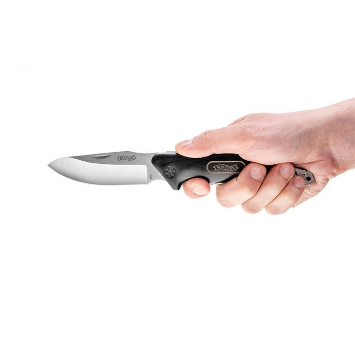 Walther Black Nature Knife serisindeki (BNK) bıçaklar, yüksek kaliteli malzemeleri ve mükemmel işçiliği ile dikkat çekiyor. Saten kaplamalı sağlam 440 C çelik damla uçlu bıçak, açık hava etkinlikleri için mükemmeldir. Omurgadaki geniş başparmak dayanağı, kesme sırasında güçlü baskı uygulamanızı sağlar ve bıçak üzerindeki ilave işaret parmağı oluğu size mükemmel kontrol sağlar. Siyah, zarif kıvrımlı pakkawood sap sadece çekici olmakla kalmaz, neredeyse 150 mm uzunluğundaki çakının kolay yönlendirilmesine olanak sağlar. Güvenlik kilidi sayesinde çakı güvenli bir şekilde yerinde durur.