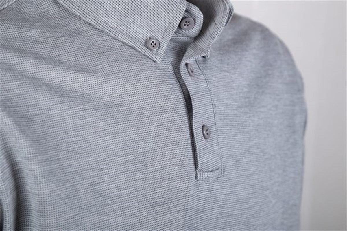 VAV Tlac-02 Polo Yaka Uzun Kollu Tişört Gri L