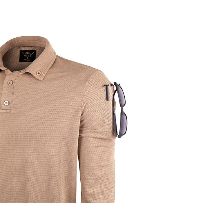 VAV Tlac-04 Polo Yaka Uzun Kol Tişört Bej XL