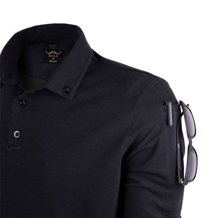 VAV Tlac-04 Polo Yaka Uzun Kol Tişört Siyah M