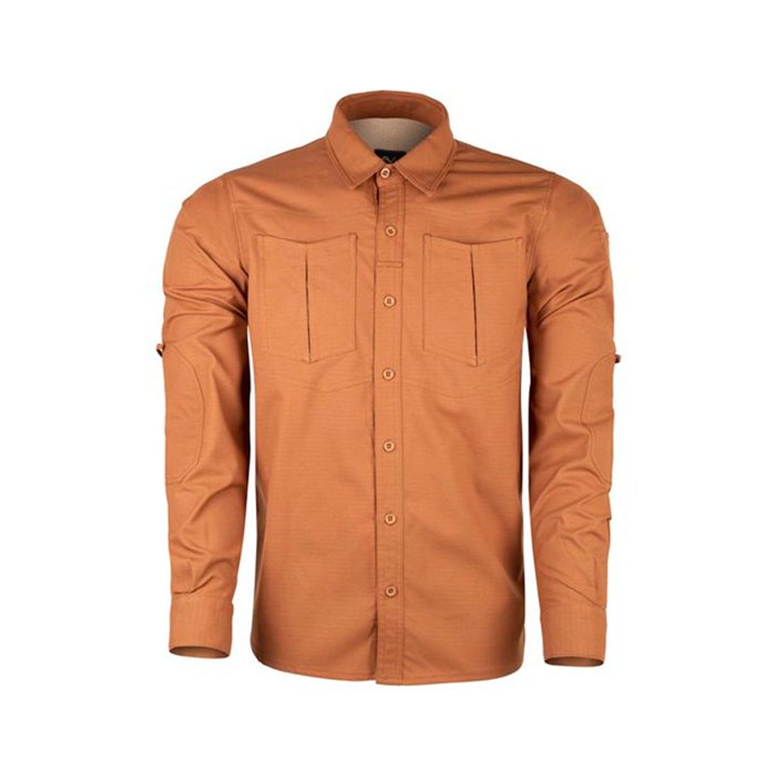 VAV Uzun Kol Pamuklu Gömlek Tactek-04 Taba XS